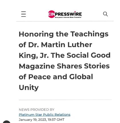 When Humanitarian Kristen Thomasino sought out a way to create a platform to galvanize the world, she stated, " To share messages of global peace and unity, the teachings of Dr. Martin Luther King, Jr. and The National Day of Racial Healing observed the day after #MLK Day are some of the many inspirations to launch...